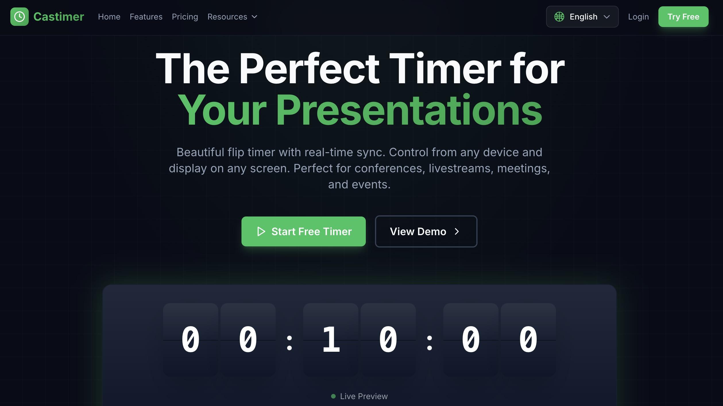 Castimer is built for real‑world events: speeches, conferences, classroom teaching, fitness sessions, and stage shows. It gives you a beautifully animated flip timer that syncs in real time across all devices.